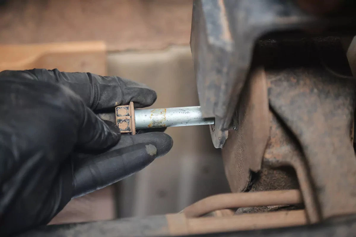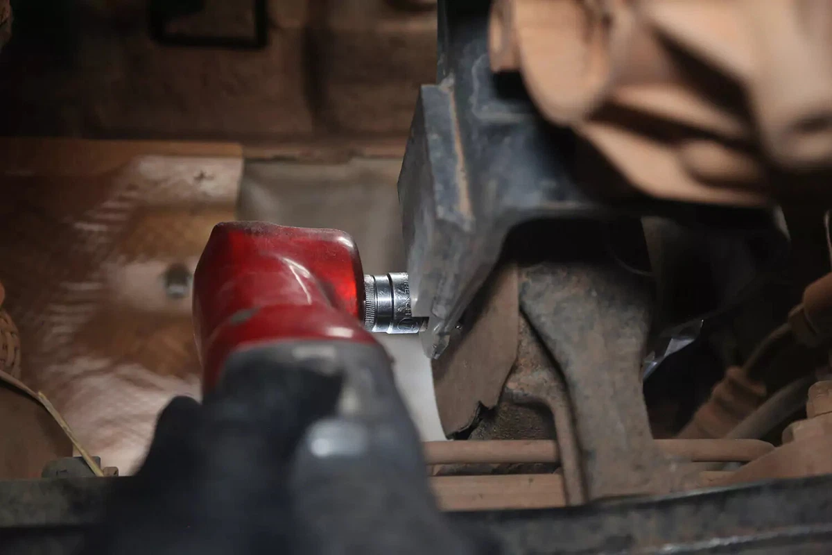 Our demo vehicle has a crossbolt, which is removed using a wrench on one side and a socket on the other. These can be hard to remove in tight quarters. Use a breaker bar, impact wrench, or cheater bar to get the required leverage.